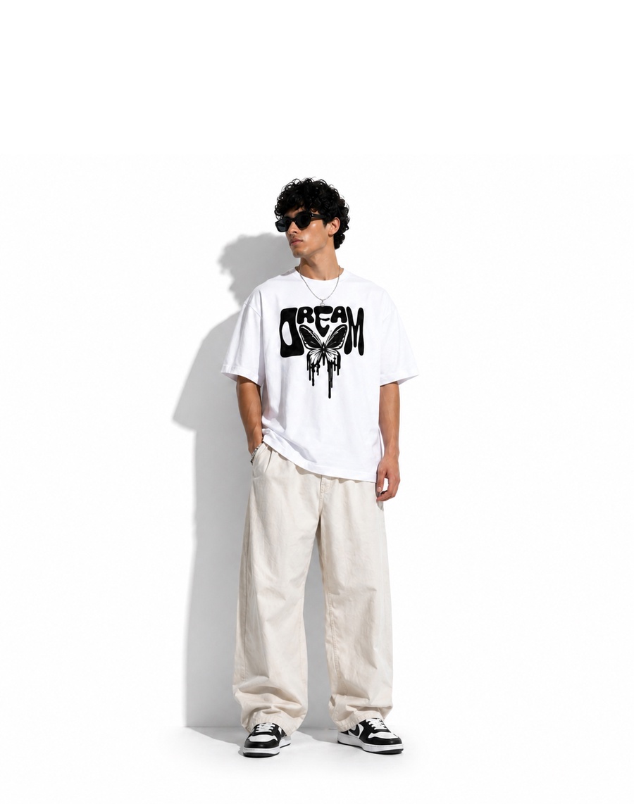Dream box fit t-shirt by MAZBOT made from premium interlock cotton, combining artistic design with modern streetwear in Egypt and high-quality DTF printing.