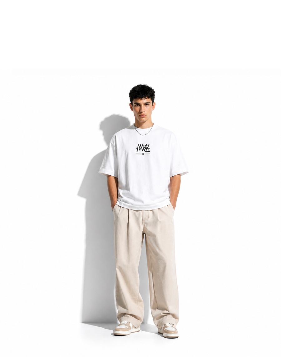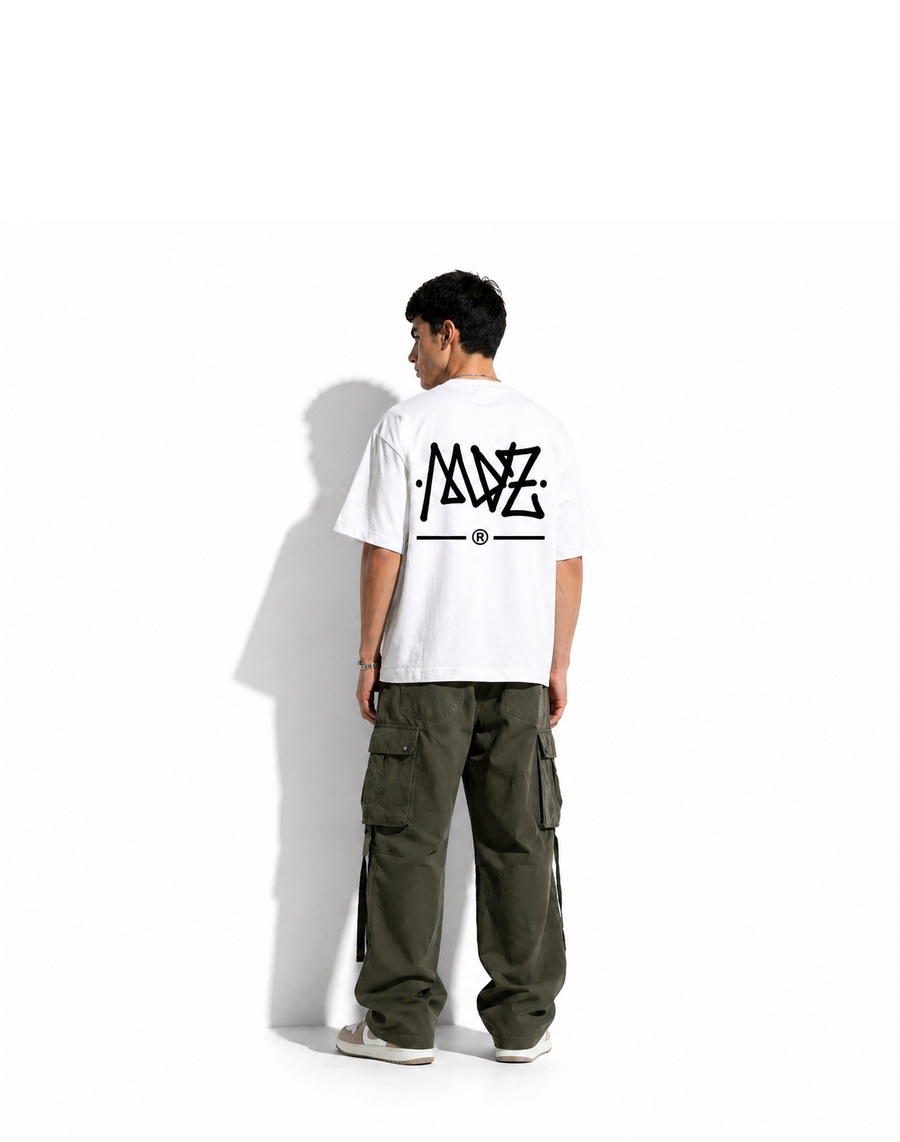 MAZ oversized t-shirt by MAZBOT made from premium interlock cotton, designed for clean luxury streetwear in Egypt with high-quality DTF printing.