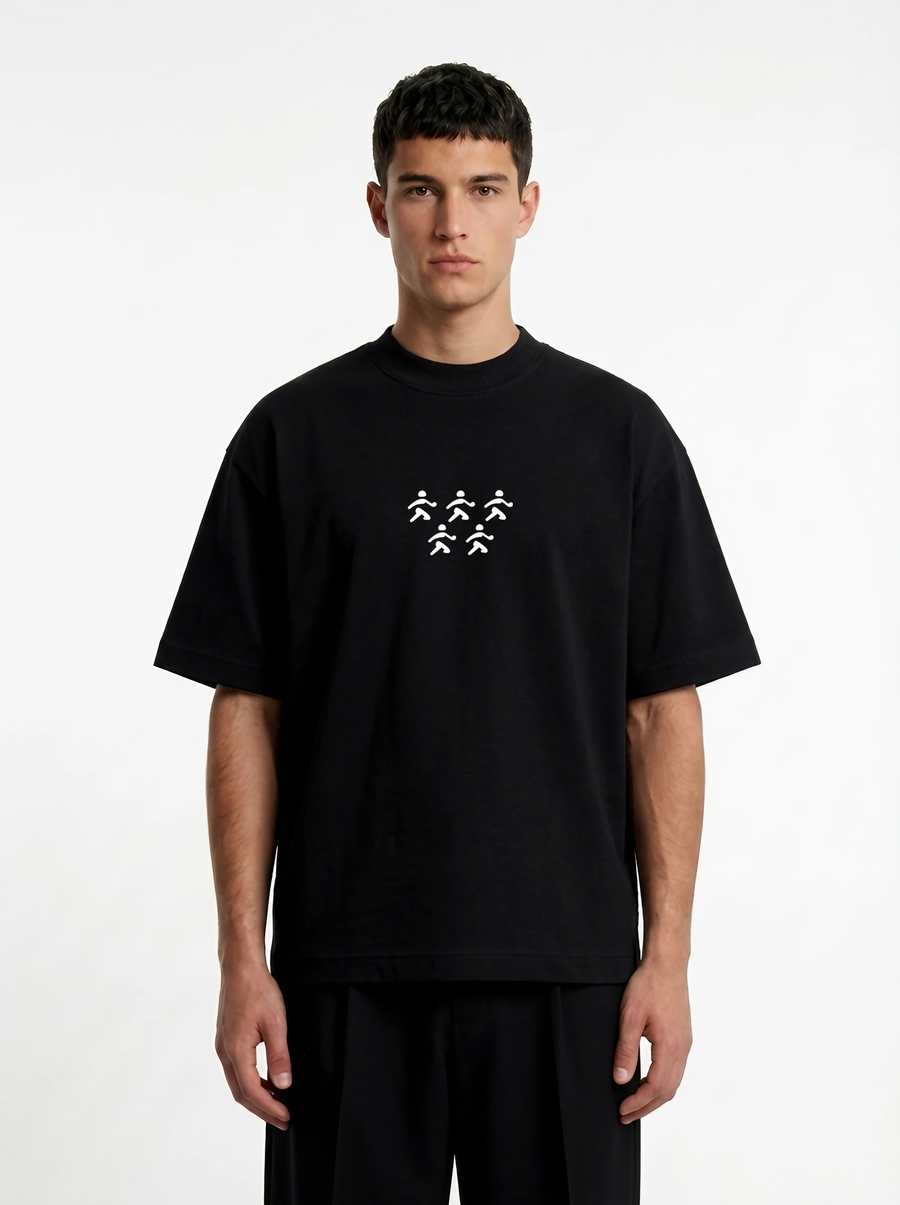 Crafted from premium interlock cotton, this oversized t-shirt offers a structured yet comfortable feel. خامة تقيلة وناعمة بتحافظ على شكل التيشرت وبتديك راحة طول اليوم.