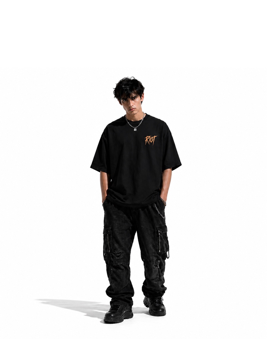 Riot oversized t-shirt by MAZBOT made from premium interlock cotton, designed for bold streetwear style in Egypt with high-quality front & back DTF printing. Strong, clean, and powerful.
