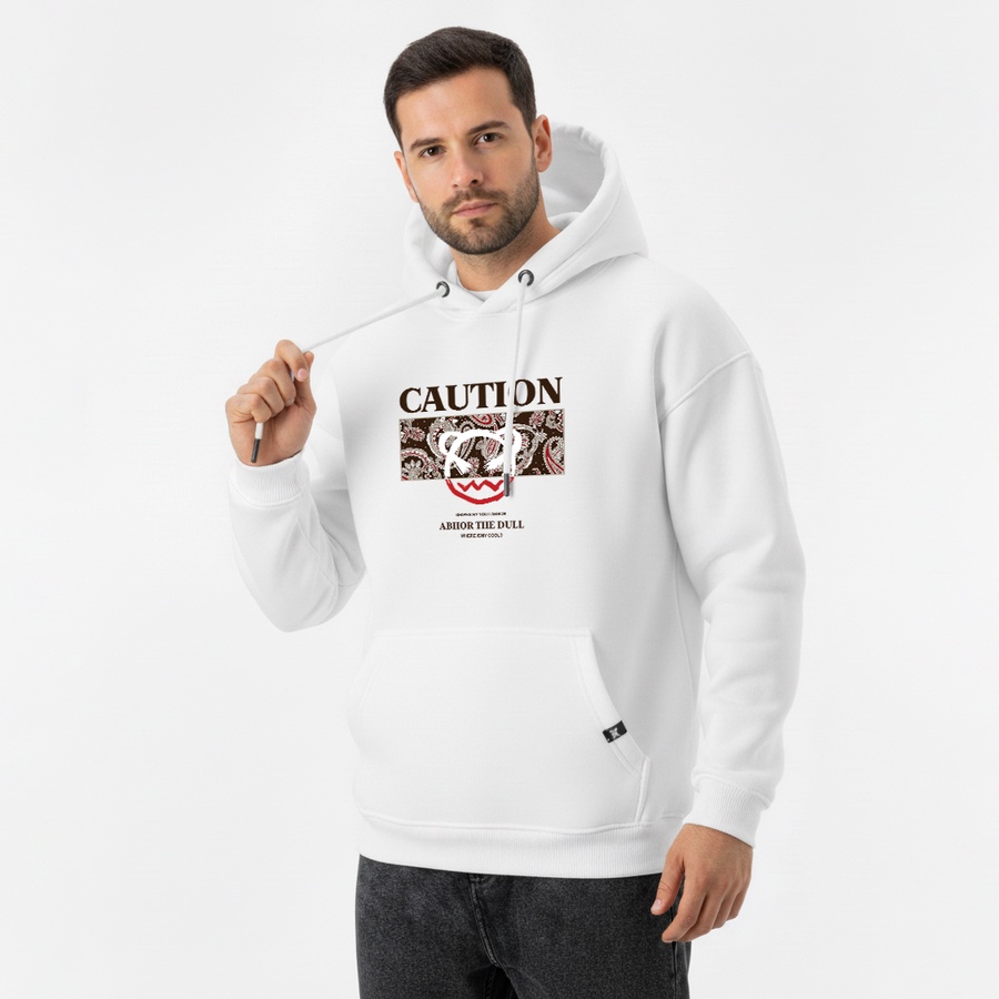 مزود بطباعة DTF عالية الجودة مضمونة ضد التقشر والبهتان حتى بعد الغسيل المتكرر، مع تصميم أمامي مميز بشعار “CAUTION” المستوحى من ستايل الشارع العصري.